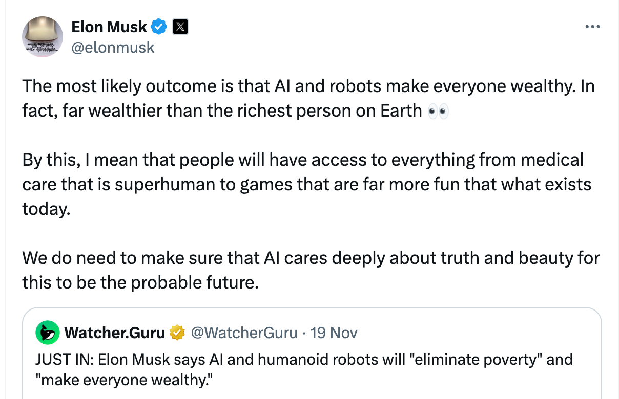 I’m not denying that the future might include robots serving cocktails by the pool. Fine, let them. What I resist is the way billionaires describe their preferred future as if it were the future.