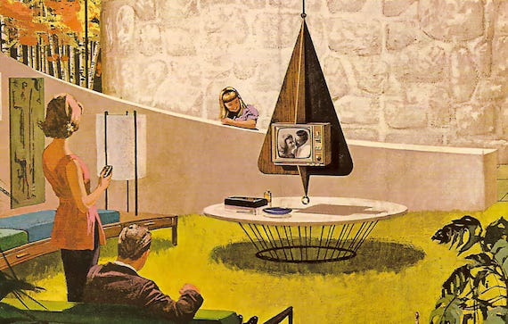 By the 20th century, the future became a product, pre-packaged and sold to a new consumer class. Television flickered in living rooms. Jet-age optimism soared. Silicon Valley garages glowed. Corporations began selling tomorrow the way they sold appliances: flying cars, nuclear kitchens, glass cities, humanoid robots, VR sanctuaries.